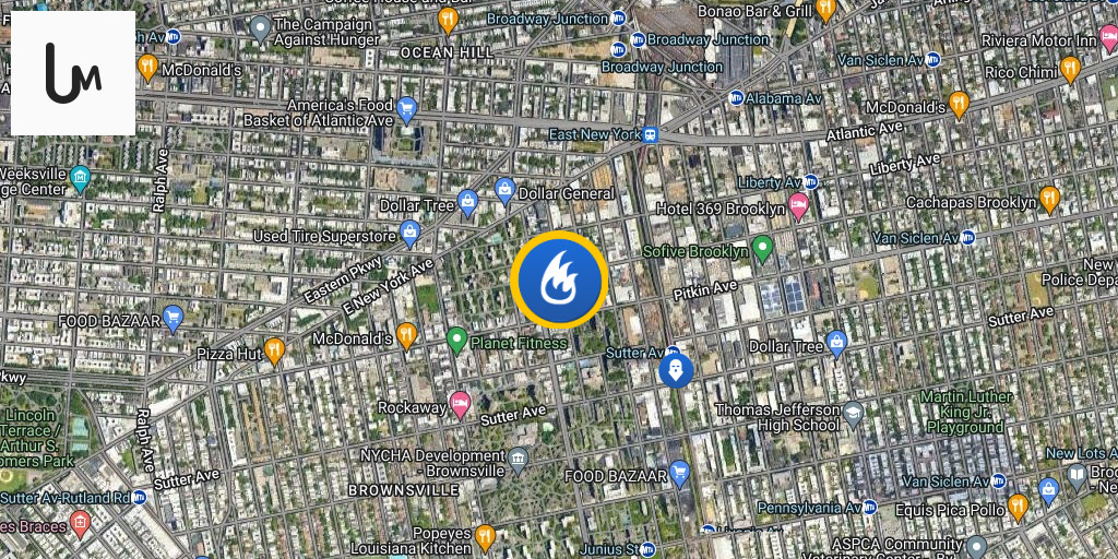 Brooklyn *10-77* Box 1682 109 Christopher Ave Pitkin-Glenmore FIRE 9TH FLOOR BALCONY 18 STORY NYCHA BLDG 75X100