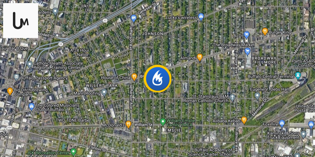 Buffalo- 4th alarm 492 Emsile. Fire on the 4th floor of a large 4 story brick building. Defensive operations